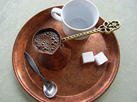 A legrégibb és leghíresebb kávékészítési módszer szerint a pörkölt kávét többször, nagyon apróra (0,1-0,2 mm szemcsenagyság) darálják, míg megfelelő finomságú nem lesz. A gondosan összeállított kávékeverék nem sötét pörkölésű: az iszlám országokban a hagyományos készítésű török kávé egy speciális keverékből, etiópiai és riói kávébab fajták sajátos vöröses-barna pörkölésű elegyéből készül. A hosszú nyelű sárgaréz edényben a cukorral és esetleg egyéb ízesítőkkel együtt főzik, minden csésze vízhez egy teáskanál őrölt kávét adnak, s kanállal kavargatva felfőzik. Egyesek a kétszeri felfőzésre esküsznek: mielőtt a kávé kiforrna, leveszik a tűzről, majd még egyszer felforralják, és csészékbe öntik. Mások háromszor is felfőzik: amikor először forrt fel a kávé, leveszik a tűzről és egy harmadát kitöltik az apró csészékbe, a többi kávét újból felforralják, majd ismét egyharmadát széttöltik, a harmadik felforralás után a műveletet megismétlik. A tetejére 1-1 csepp hideg vizet tesznek, így a zacc gyorsabban leülepszik. Akiket nem zavar a zacc, szűrés nélkül, a leülepedett kávéaljról óvatosan kortyolva fogyasztják a török kávét.
